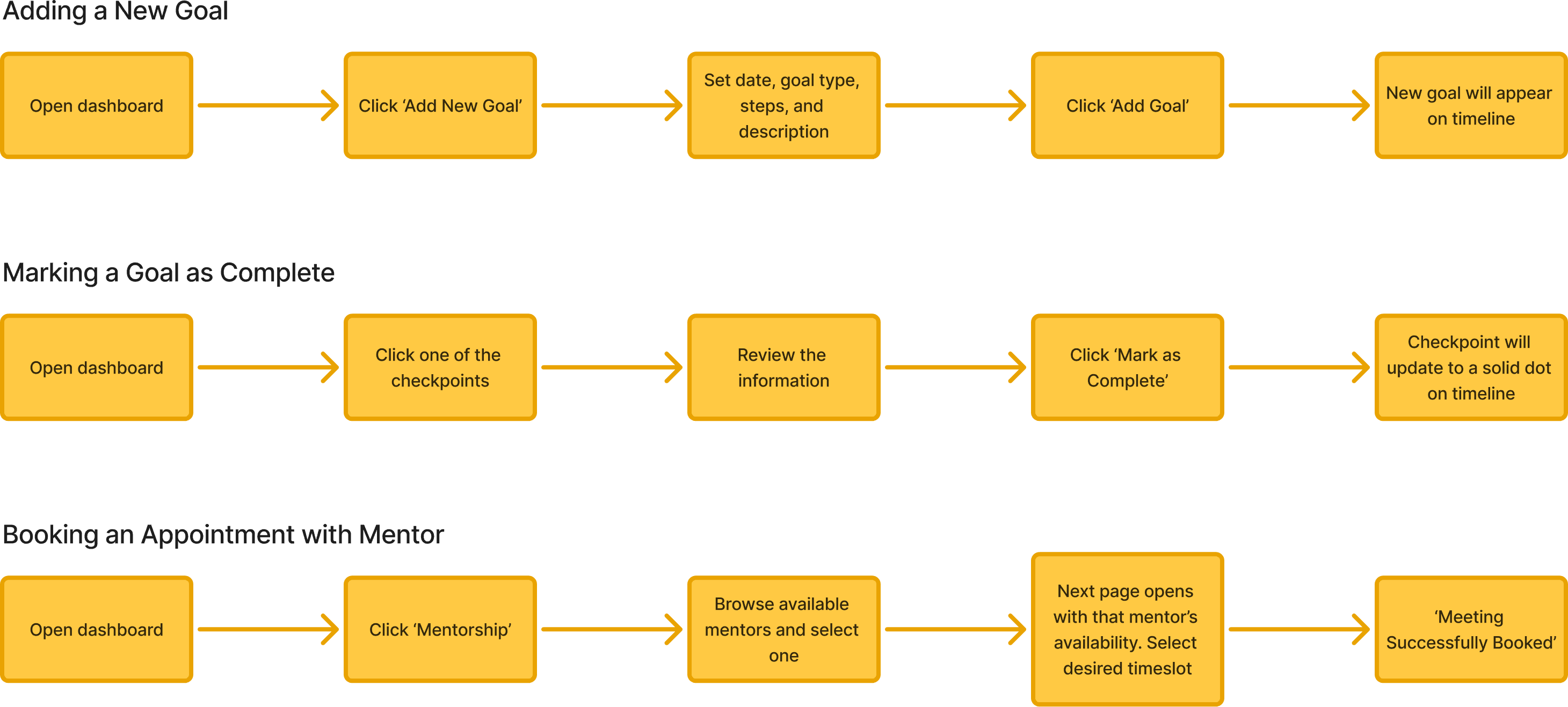 Advanta’s structure prioritised clarity, progression, and ease of navigation through a goal-first approach to career development. For the minimum viable product, my team and I focused on four core features.