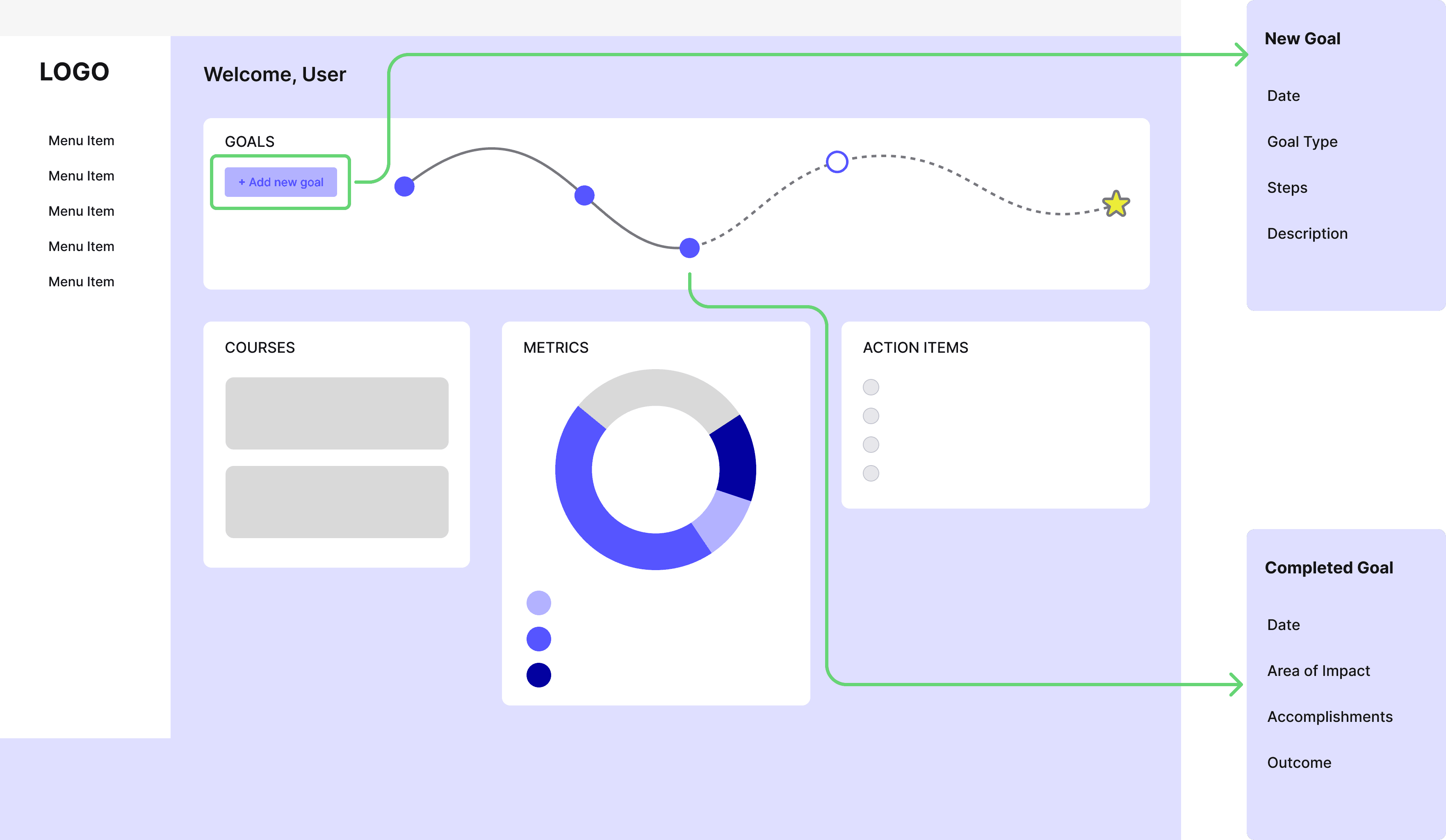 Dedicated space for viewing, managing, and updating active and completed goals.