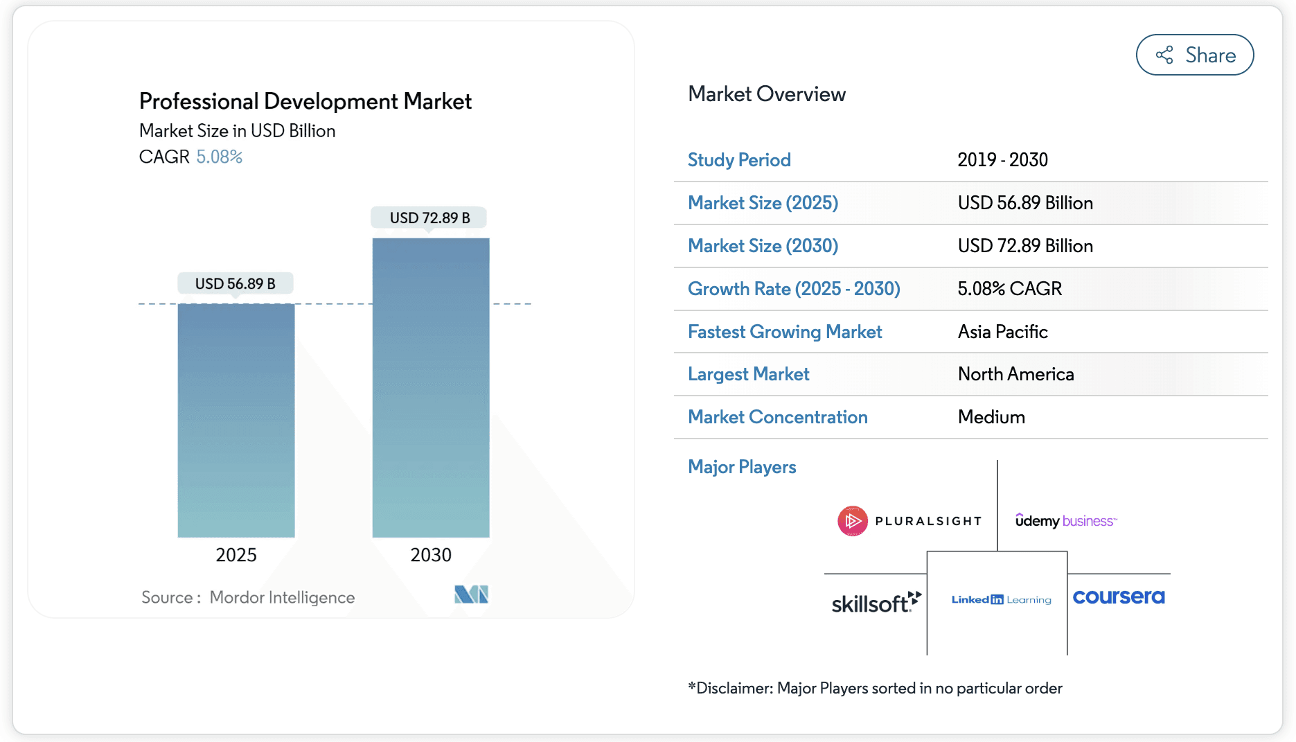 The professional development market is large and expanding, reflecting sustained demand for career support tools.