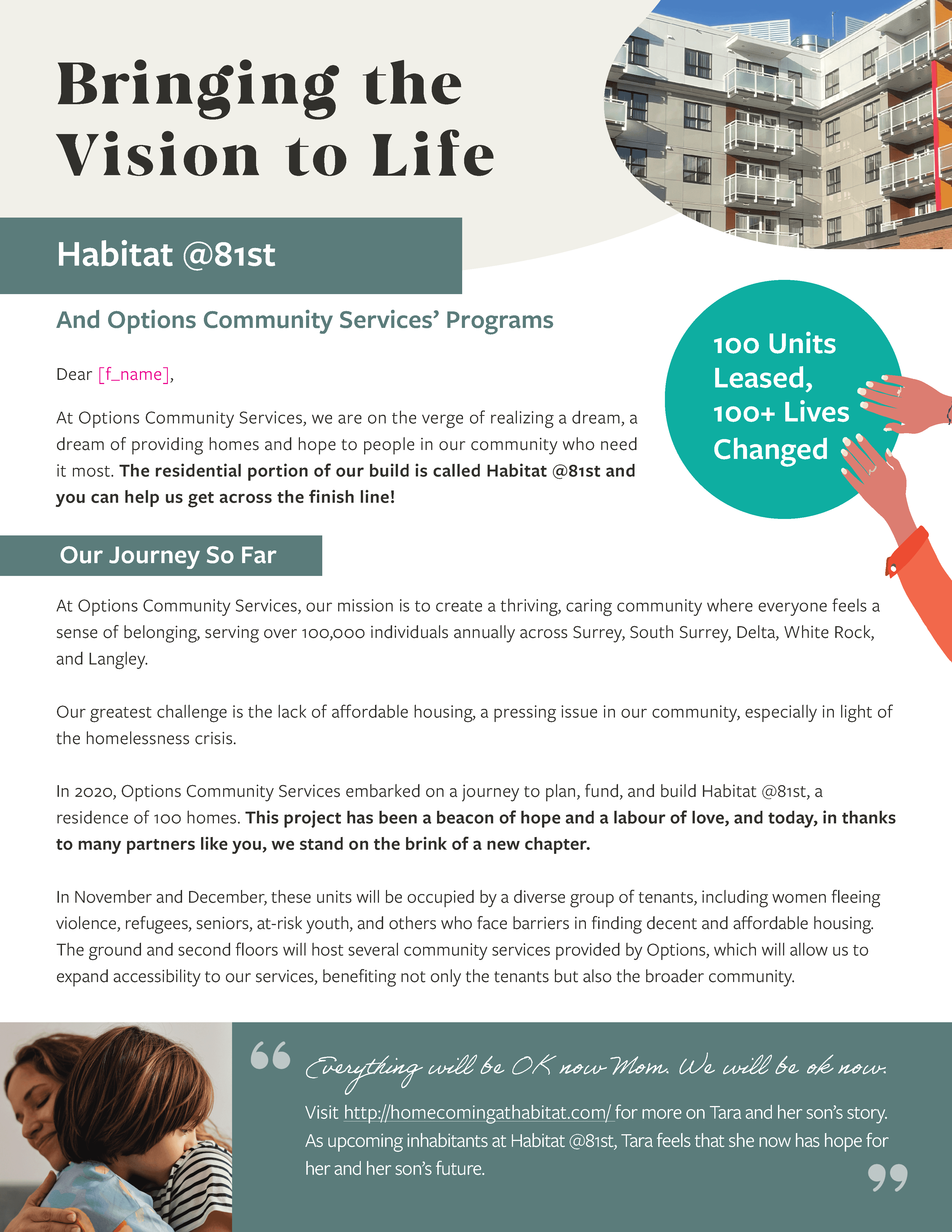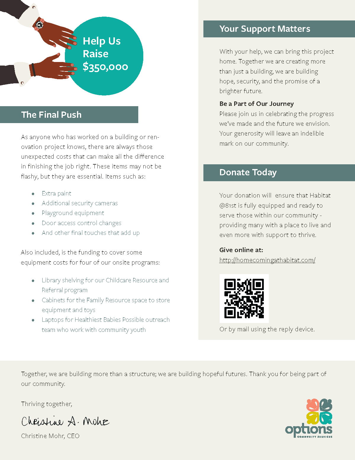 Options Community Services Donor Letter
